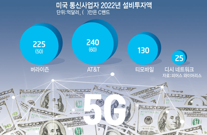 AT&T도 5G 가입자 7000만명 커버리지 확보를 목표로 설비투자 예산 240억달러를 배정했다. 이 가운데 60억달러는 C밴드 인프라 구축에 활용될 예정이다.