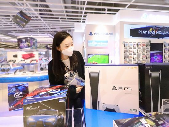롯데하이마트 메가스토어 잠실점 1층에 위치한 ‘플레이스테이션 전문 스토어’에서 고객이 제품을 살펴보고 있다. |