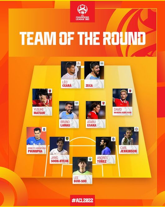 아시아축구연맹(AFC)는 18일 공식 채널을 통해 2022 아시아축구연맹 챔피언스리그 조별리그 1라운드 베스트 11을 선정했다.