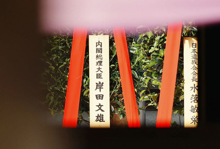 교도통신은 21일 기시다 후미오 일본 총리가 태평양전쟁 A급 전범이 합사된 야스쿠니신사에 공물을 봉납했다고 보도했다.