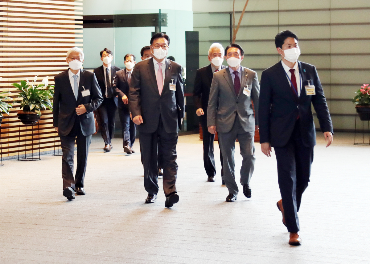 정진석 국회부의장을 단장으로 한 대표단은 26일 오전 11시께 기시다 후미오 총리를 만나기 위해 총리 관저를 방문했다.
