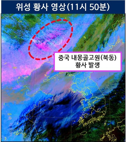(서울=연합뉴스) 이재영 기자 = 우리나라 북서쪽에 있는 중국 내몽골고원에서 26일 정오께 황사가 발생했다고 기상청이 밝혔다.