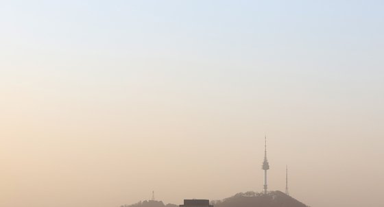 황사롤 가득했던 지난달 5일 경칩 아침 인왕산에서 바라본 남산타워 방향 서울 하늘의 모습. 연합뉴스 |