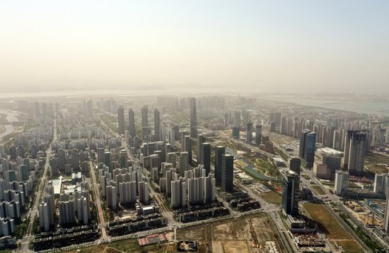 서쪽에서 유입된 황사의 영향으로 미세먼지가 '매우 나쁨' 수준을 보인 27일 오전 인천시 연수구 송도국제도시 일대. 연합뉴스 |