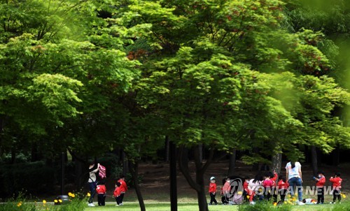 푸르름 만끽하는 어린이들 |