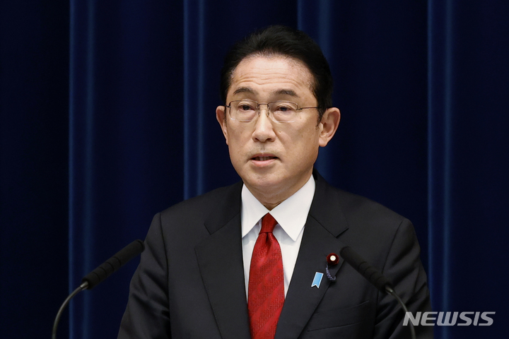 [도쿄(일본)=AP/뉴시스]기시다 후미오 일본 총리가 지난 8일 도쿄 총리 관저에서 기자회견을 가지고 러시아에 대한 추가 제재를 발표하고 있다. 2022.04.28. |