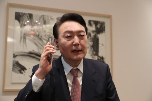 윤석열 대통령 당선인이 지난 3월 10일 오전 서초동 자택에서 조 바이든 미국 대통령과 전화 통화를 하고 있다. (사진=연합뉴스) |