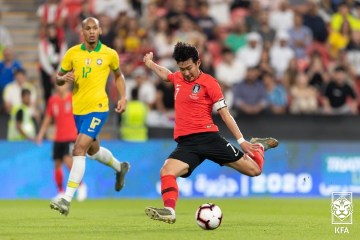 2019년 브라질전에서의 손흥민. 대한축구협회 제공 |