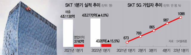 5G·IPTV 등 기존 핵심 사업이 탄탄한 가입자 증가세로 실적을 뒷받침했다. 5G 가입자는 전 분기보다 100만 명 가량이 늘어 1088만 명을 기록했다. 5G 도입 후 3년 만에 처음으로 1000만 명을 넘어선 것이다. 5G 가입자 비중은 47.6%로, 전 분기보다 4.3%포인트 늘었다. SK텔레콤은 컨퍼런스콜에서 “현 추세라면 연말 5G 가입자 1300만을 달성하고 비중은 58%를 기록할 전망”이라며 “5G 대중화를 위해 다양한 요금제를 선보일 계획”이라고 했다. 정부가 추진하고 있는 5G 중간 요금제 도입 가능성을 시사한 것이다.