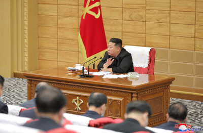 김정은 북한 국무위원장이 지난 15일 노동당 중앙위원회 정치국 비상협의회를 주재하고 있다. 조선중앙통신·연합뉴스 |