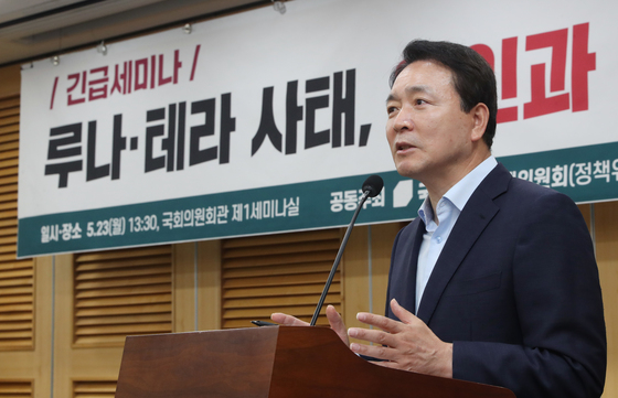 성일종 국민의힘 정책위의장이 23일 오후 국회 의원회관에서 '루나·테라 사태, 원인과 대책'을 주제로 열린 긴급세미나에서 인사말을 하고 있다./사진=뉴스1 |