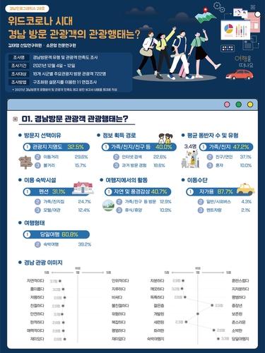 이번 조사를 담당한 김태영 선임연구위원과 소은영 전문연구원은 '위드 코로나' 시대를 맞아 경남에 관광객을 유치하는 방안으로 '관광객 만족도 관리 및 개선', '신규 관광상품 개발', '나만 알고 싶은 명소 등 선정', '경남형 생활 굿즈 개발', '도시관광 육성' 등의 정책과제를 제안했다.