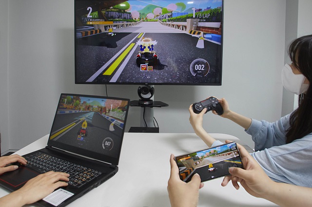 글로벌 레이싱 출시 예정작 '카트라이더: 드리프트'가 PC, 콘솔에 이어 모바일 플랫폼까지 확장 지원한다. 사진은 PC, 콘솔, 모바일 크로스플레이 모습 /넥슨 제공 |