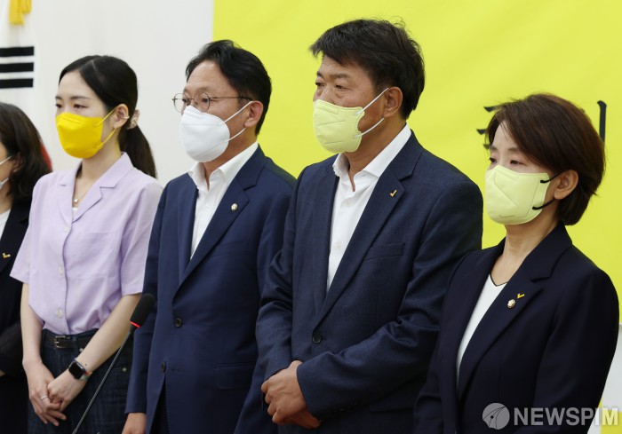 [서울=뉴스핌] 김민지 기자 = 여영국 정의당 대표가 2일 오전 국회에서 열린 중앙선거대책위원회 해단식에서 지방선거 패배의 책임을 지고 사퇴하겠다는 의사를 밝히고 있다. 2022.06.02 kimkim@newspim.com