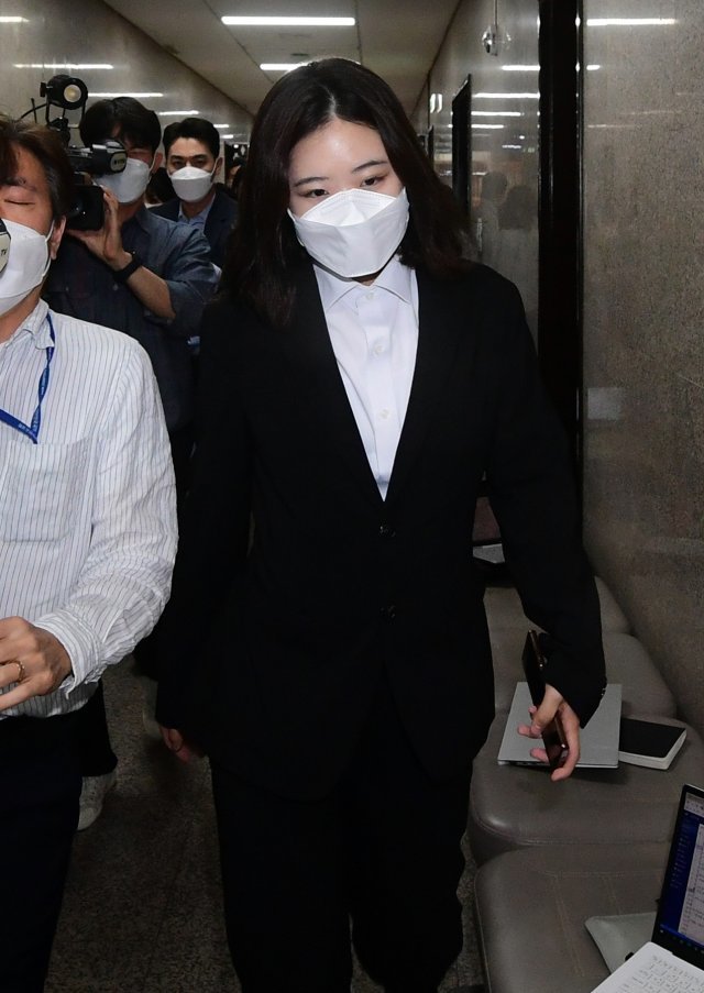 2일 서울 여의도 국회에서 열린 더불어민주당 비대위 회의에 참석하기 위해 박지현 비대위원장이 취재진을 피해 회의실로 들어가고 있다. 사진공동취재단 |