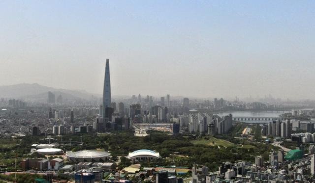 지난 4월 27일 오후 서울 시내가 황사와 미세먼지로 뿌옇다. 뉴스1 |