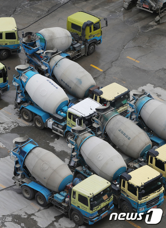 (안양=뉴스1) 김영운 기자 = 7일 오후 경기 안양시의 한 레미콘 공장에 레미콘 차량들이 분주하게 움직이고 있다. 이날 화물연대가 총파업에 돌입하면서 시멘트 가루를 운반하는 벌크시멘트트레일러(BCT) 차량들이 운행을 멈춰 시멘트 운송에 차질이 빚어지고 있다. BCT 차량의 경우 절반가량이 화물연대에 소속돼있어 파업이 장기화할 경우 건설업계도 타격이 불가피할 것으로 보인다. 2022.6.7/뉴스1