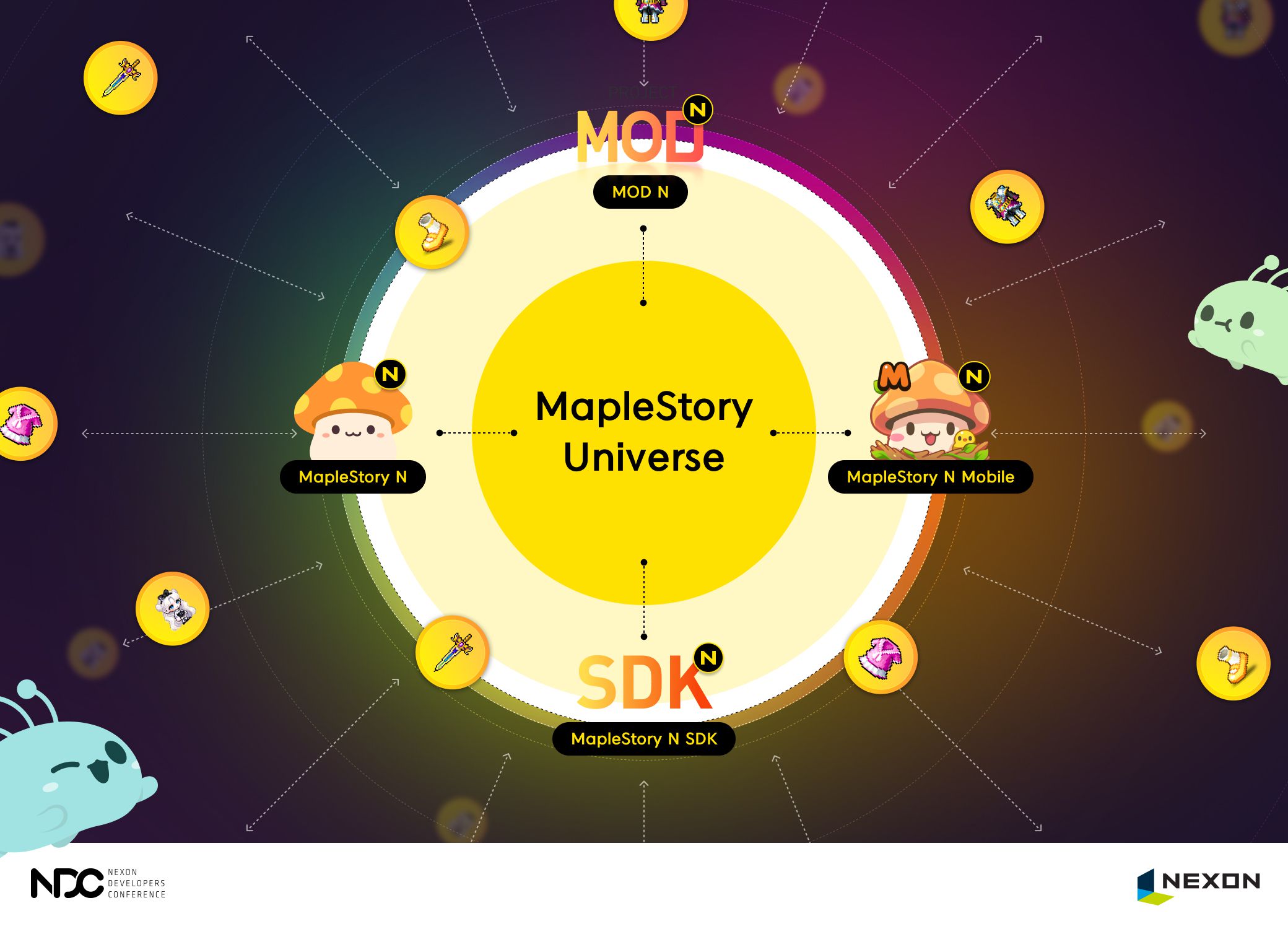 넥슨은 PC와 모바일에서 손쉽게 개발이 가능한 블록체인 게임 제작 샌드박스 플랫폼 모드(MOD) N(가칭)도 준비하고 있다고 밝혔다. ‘모드 N’에서는 ‘메이플스토리 NFT’ 뿐만 아니라 외부 NFT를 활용해 독창적인 게임을 개발할 수 있다. 제작된 게임은 인기도에 따라 ‘메이플스토리 유니버스’ 내 기여도가 측정돼 합당한 보상을 받을 수 있다.