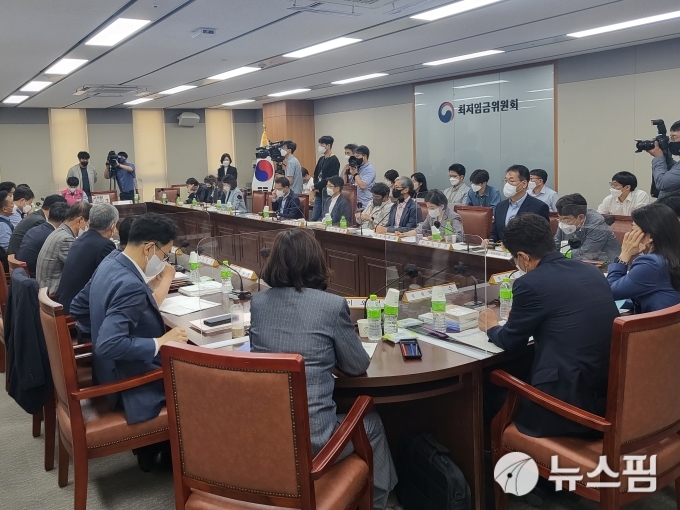 [세종=뉴스핌] 이수영 기자 = 9일 정부세종청사에서 열린 최저임금위원회 제3차 전원회의 전경. 2022.06.09 swimming@newspim.com |