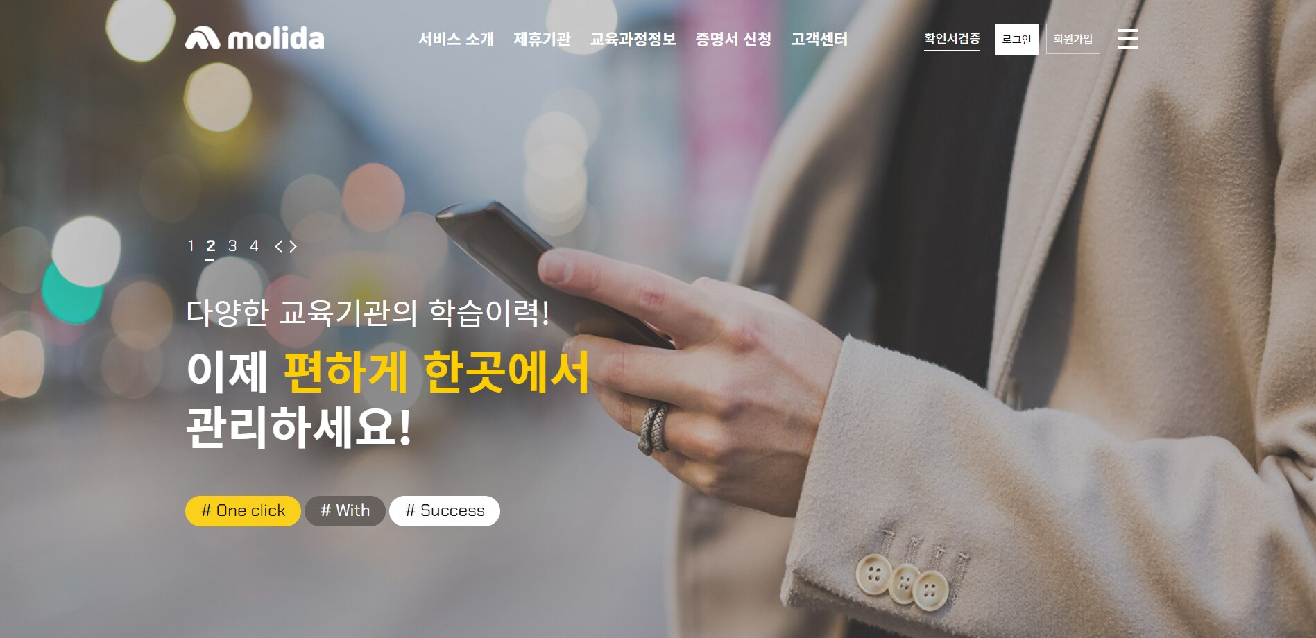 마크애니 블록체인 기반 평생학습이력 플랫폼 '몰리다' 홈페이지./ 마크애니 제공 |