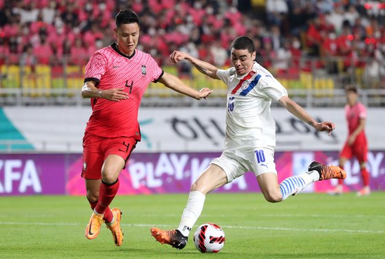 파울루 벤투(포르투갈) 감독이 이끄는 한국 축구대표팀은 10일 수원월드컵경기장에서 열린 파라과의와의 A매치 평가전 0-1로 뒤진 후반 5분 파라과이 미겔 알미론(뉴캐슬 유나이티드)에 추가골을 내줬다.