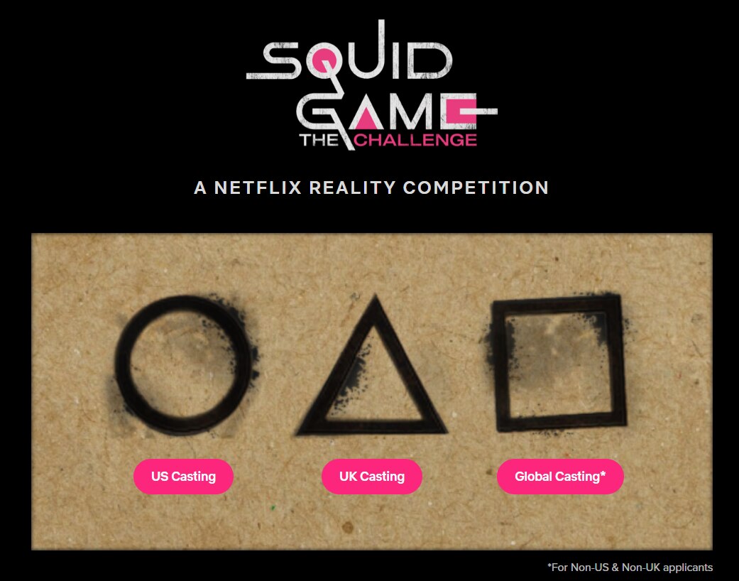 14일(현지시각) 넷플릭스가 공개한 리얼리티 프로그램 '오징어 게임:더 챌린지' 참가 신청 페이지. /'오징어 게임:더 챌린지' |