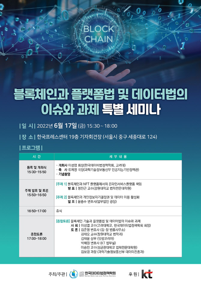 한국데이터법정책학회 ‘블록체인과 플랫폼법·데이터법’ 세미나 포스터. |