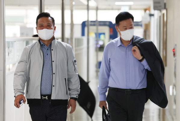 29일 오후 세종시 정부세종청사 최저임금위원회 회의실에서 열린 제8차 전원회의에 사용자위원인 류기정 한국경영자총협회 전무(오른쪽)와 근로자위원인 이동호 한국노총 사무총장이 회의실로 향하고 있다.(사진=연합뉴스) |