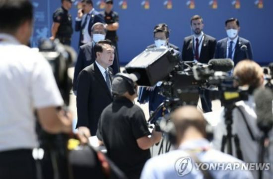 나토 정상회의 참석에 대해 반발하고 있는 중국에 대해서는 "특정 국가를 거명하기보다 자유와 인권, 법치를 중시하는 그런 규범에 입각한 질서가 존중되는 협력을 나토 국가들과 인태 국가들이 함께 연대해서 만들어 가야 된다"며 "그런 차원의 이번 나토 회의 참석에 의미가 있다"고 언급했다. 이어 "그동안 정치·군사적인 안보에서 공급망을 포함한 이런 경제안보와 포괄적인 안보로 안보의 개념이 지금 바뀌어 가고, 그리고 특정 지역의 역내 안보 상황이 전 세계적인 파급을 주기 때문에 특정 지역의 동맹만으로는 안보 위기가 해결되지 않는다는 공감대를 지금 갖게 됐다"고 덧붙였다.