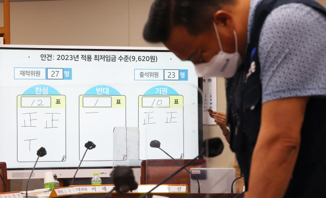 앞서 전날 최저임금위원회는 제8차 전원회의를 열어 논의를 진행했지만 경영계와 노동계가 이견을 좁히지 못했다. 이에 공익위원들이 제출한 중재안을 표결에 부쳐 전날 자정께 내년도 최저임금을 올해보다 5.0% 오른 9620원으로 결정했다.