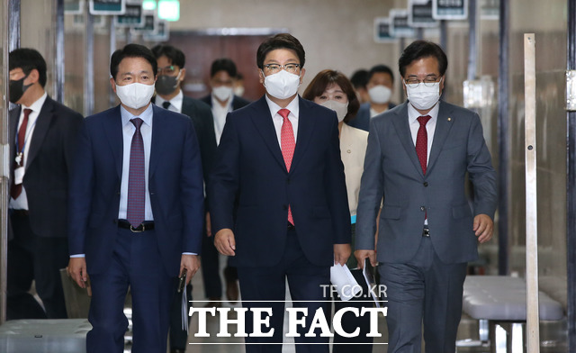 [더팩트ㅣ국회=곽현서 기자] 권성동 국민의힘 원내대표는 4일 정치자금범 위반 혐의로 검찰 수사 선상에 오른 김승희 보건복지부 장관 후보자에 대해 "스스로 거취를 결단해야 한다"며 자진사퇴를 촉구했다.