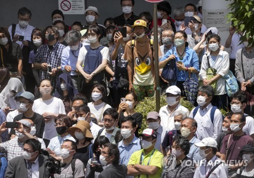 선거 유세 지켜보는 일본 유권자 |