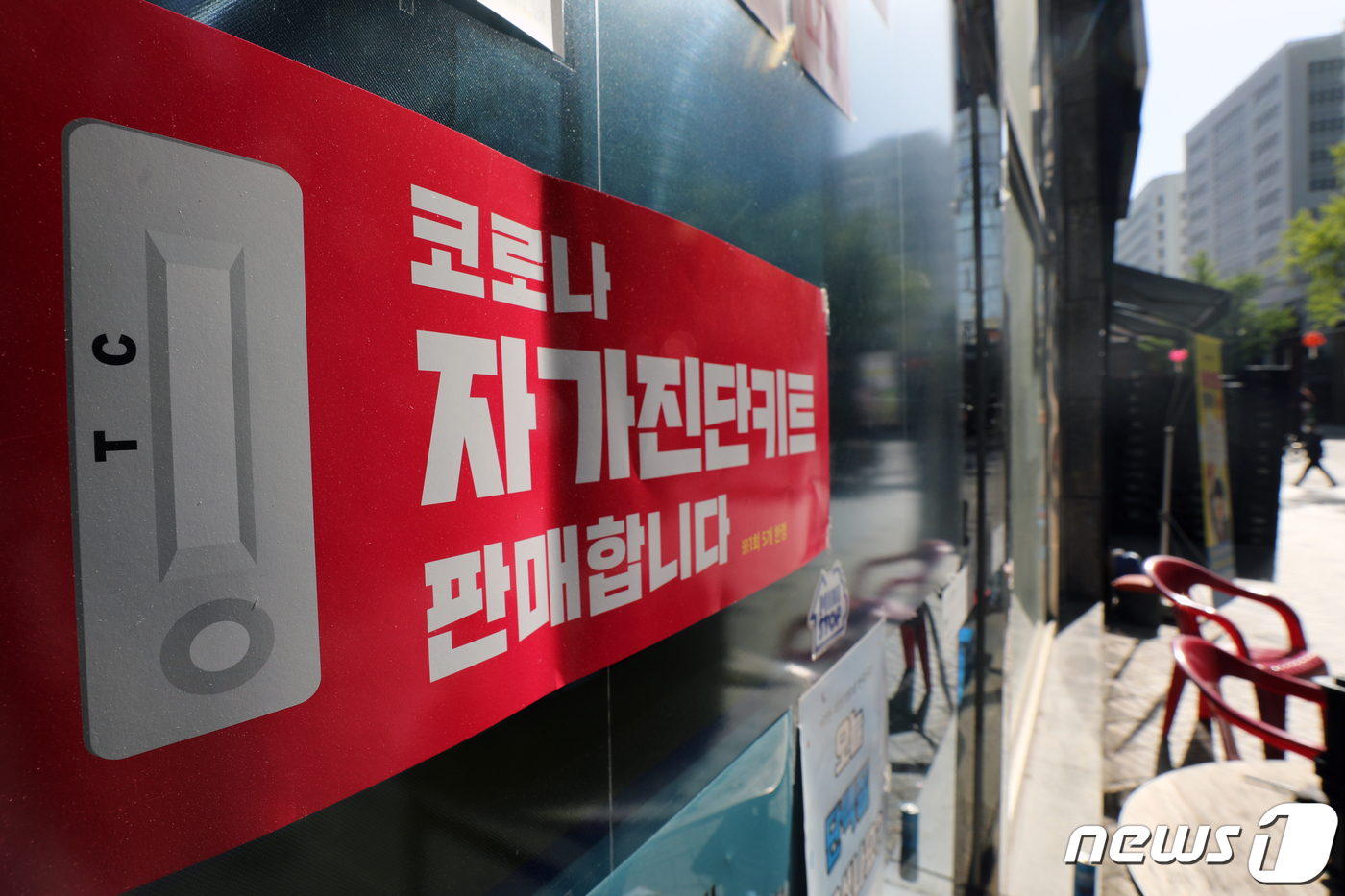 서울시내 한 편의점에 붙어있는 '코로나19 자가검사키트 판매' 안내문. 2022.5.1/뉴스1 © News1 황기선 기자 |