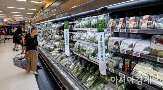 최근 폭우와 함께 찾아온 장마로 채소값이 급등하고 있는 3일 서울 한 대형마트를 찾은 고객들이 장을 보고 있다./강진형 기자aymsdream@ |