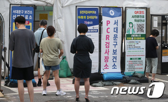 (서울=뉴스1) 임세영 기자 = 6일 오전 서울 서대문구보건소 코로나19 선별진료소에서 시민들이 검사를 기다리고 있다.