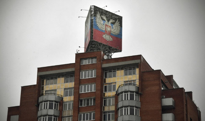 도네츠크인민공화국(DPR) 상징이 전시된 건물(사진=AFP) |