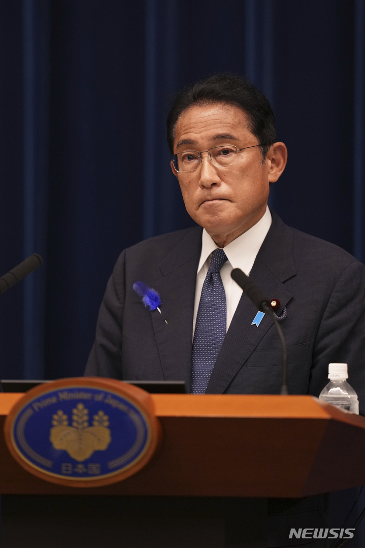 [도쿄=AP/뉴시스] 기시다 후미오 일본 총리가 14일 도쿄 총리관저에서 연설하고 있다. 기시다 총리는 아베 신조 전 총리가 야외 유세 연설을 하던 중 총에 맞아 사망한 것과 관련해 당시 경찰의 불충분한 경호를 비난했다. 2022.07.14. |