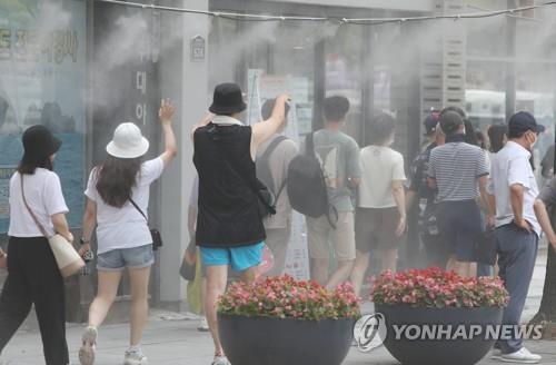 쿨링포그에 더위 식히는 시민 |