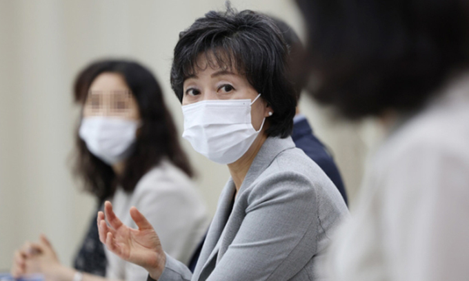 박순애 사회부총리 겸 교육부 장관이 14일 오후 서울 강서구 방화초등학교에서 간담회를 갖고 발언하고 있다. 뉴시스 |