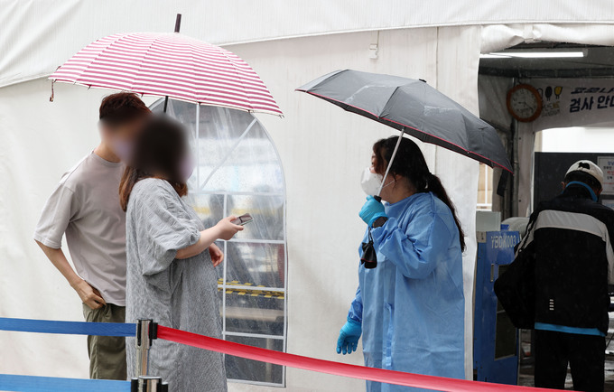 21일 오전 서울 강남구보건소 코로나19 선별진료소에서 의료진이 검사를 받으려는 시민들을 안내하고 있다. 연합뉴스 |