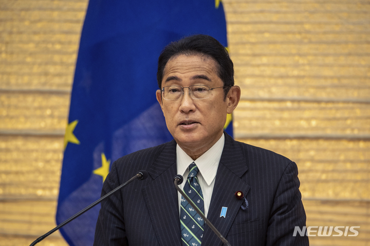 [도쿄=AP/뉴시스]지난 20일 일본 도쿄의 총리 관저에서 기시다 후미오 총리가 미홀 마틴 아일랜드 총리와 기자회견을 가지고 발언하고 있다. 2022.07.21. |