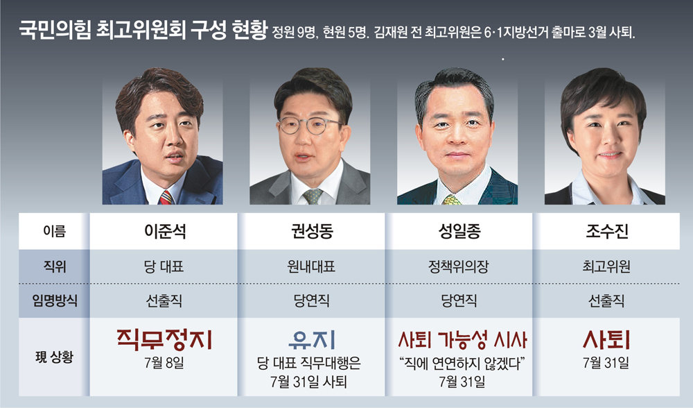이준석 등 5명 최고위 참석 불가 상태, 친윤 “9명중 과반 미달돼 기능 상실”
