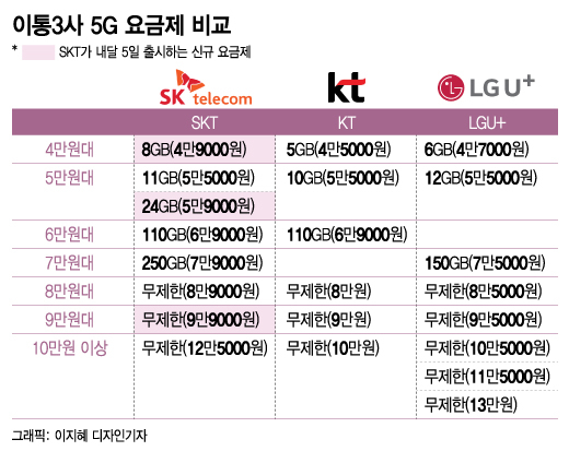SK텔레콤이 이달 5일 '5G 중간요금제'를 출시한다. 데이터 허용량 기준 10GB와 110GB로 양분돼 있던 기존 요금제에 이용자가 가장 많은 24GB 데이터의 요금제를 새로 추가하는 방식이다. KT와 LG유플러스도 조만간 중간 요금제를 선보일 예정이어서 요금경쟁이 본격화될 전망이다. 다만 이용자들의 반응이 엇갈린다. 정치권과 시민단체는 요금제 다양성이 부족하다는 비판을 가하는 반면 매달 1만원 가량 통신비를 아낄 수 있어 긍정적이라는 반응도 나온다.