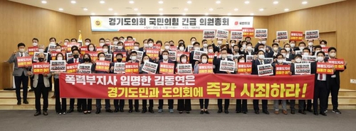 국민의힘은 이날 의원총회를 연 뒤 성명을 내 "김 부지사의 임명권자인 김 지사가 이번 사태에 대해 진심으로 경기도민과 도의회에 사죄하고, 자신의 불통과 의회·지방행정 무시에서 사태가 비롯됐음을 분명히 인정하고 현실적인 재발 방지 대책을 제시하라"고 요구하기도 했다.
