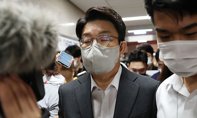 당 대표 직무대행에서 물러나겠다는 뜻을 밝힌 국민의힘 권성동 원내대표가 1일 서울 여의도 국회 원내대표실 앞에서 기자들의 질문을 받고 있다. 연합뉴스 |