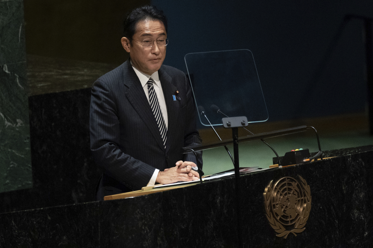 기시다 후미오 일본 총리가 1일(현지시간) 뉴욕 유엔본부에서 열린 핵확산금지조약(NPT) 재검토회의에서 연설하고 있다. 뉴욕/AP뉴시스 |
