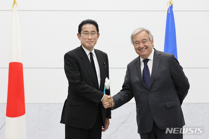 [서울=뉴시스] 김예진 기자 = 일본의 기시다 후미오(岸田文雄) 총리는 6일 안토니우 구테흐스 유엔 사무총장과 회담을 가지고 중국이 발사한 탄도미사일이 자국의 배타적경제수역(EEZ)에 낙하한 데 대해 비난했다.