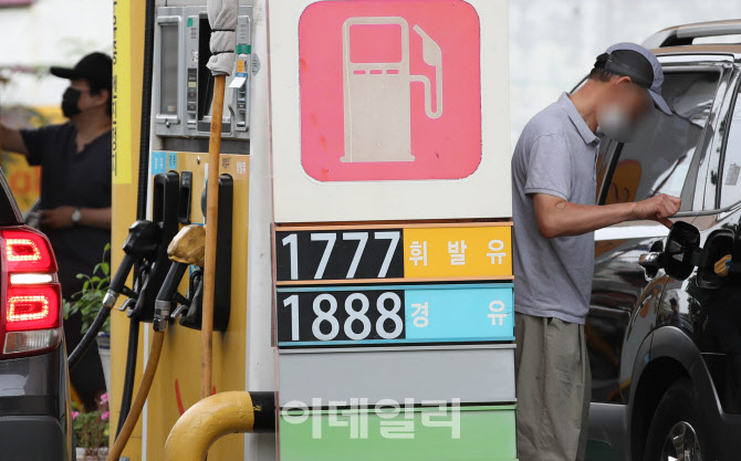 [이데일리 노진환 기자] 국제유가가 하락하면서 국내 기름값도 점차 내려가는 추세를 보이고 있다. 7일 한국석유공사 유가정보서비스 오피넷에 따르면 6일 기준 보통휘발유 평균 판매가격은 리터(L)당 1852.00원을 기록했다. 보통휘발유 평균 판매가격은 6월 30일 2144.90원까지 올랐다가 이후 지속 하락하는 추세다. 지난달 21일(1989.93원) 1900원대로 떨어졌고, 31일(1897.27원) 1800원대로 내려가는 등 하락세가 빨라지고 있다. 7일 오전 서울 양천구의 한 주유소의 휘발유 가격이 1777원을 나타내고 있다.