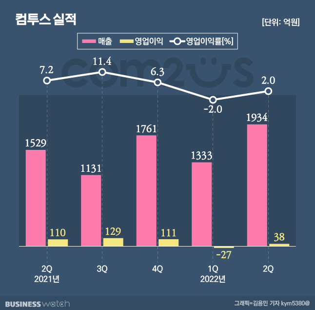 컴투스의 2분기 매출은 1934억원으로 전년 동기(1529억원) 대비 26% 늘었다. 전기 1333억원보다 45% 늘었다. 김동수 컴투스 상무는 "서머너즈 워 8주년 프로모션 효과와 야구 라인업의 호조, 미디어 콘텐츠 자회사의 호실적으로 매출액이 전년동기 대비 26.55% 증가했다"며 "역대 최대 분기 매출을 경신했다"고 말했다.