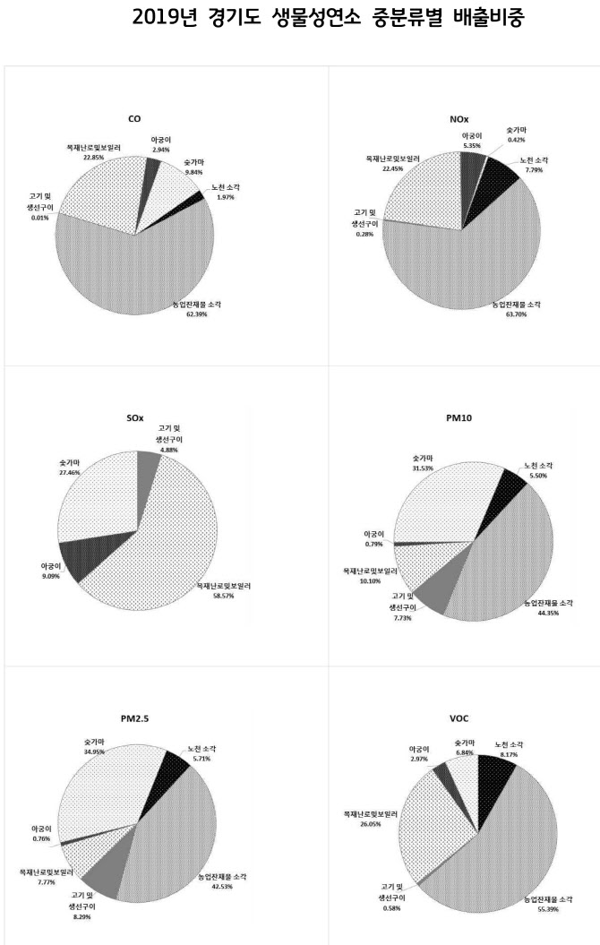 경기도 지역은 교외 농촌지역을 중심으로 대기오염 부하가 큰 목재연료가 여전히 많이 사용되고 있다. 시·군별 목재연료 사용에 다른 초미세먼지 연간 배출량을 보면 목재난로 및 보일러는 화성시(10만3000톤)와 안성·평택시(각 7만4000톤)에서, 숯가마는 양주시(94톤)와 여주시(66톤)에서 가장 많이 발생했다.